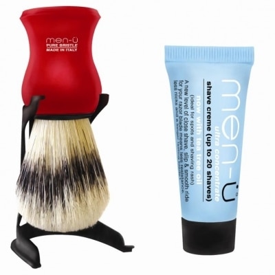 - Ce blaireau en poils véritables de sanglier t’apporte tout le savoir-faire des barbiers italiens. Il est fourni avec un stand de rangement et une crème à raser men-ü de 15ml qui permet jusqu’à 20 applications.