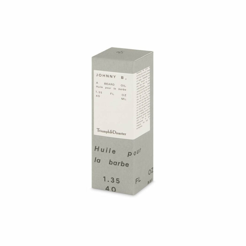 - Das Bartöl Johnny B. von Triumph & Disaster ist mit hochwertigen natürlichen Ölen bereichert, um dein Barthaar zu nähren, zu schützen und ihm einen gesunden Glanz zu verleihen.
